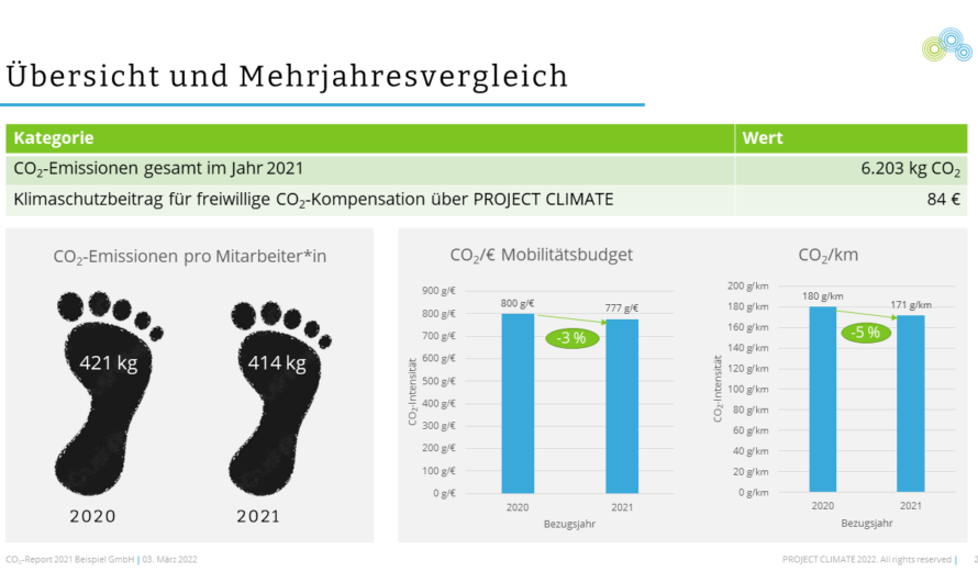 Gemeinsam mit MOBIKO bietet PROJECT CLIMATE CO2-Reports für die Mitarbeitermobilität, die CO2-Kompensation und weitere Mobilitätsaktivitäten an.